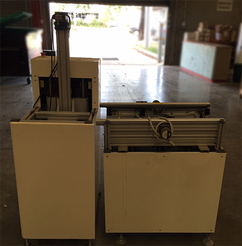 | Description: | Single magazine unloader with pusher unit. Product flow left to right. |